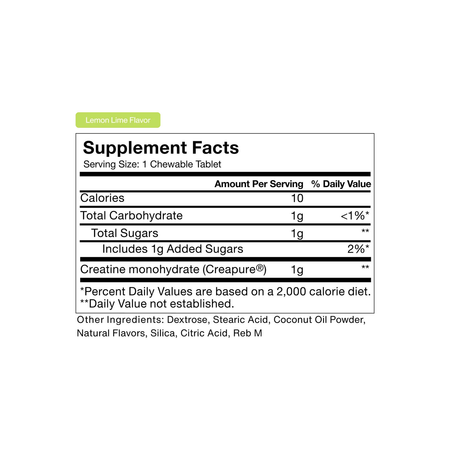 Pure Creapure® creatine monohydrate in a convenient, clean, and chewable form.
